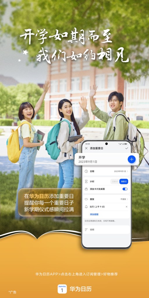 华为日历开学系列海报